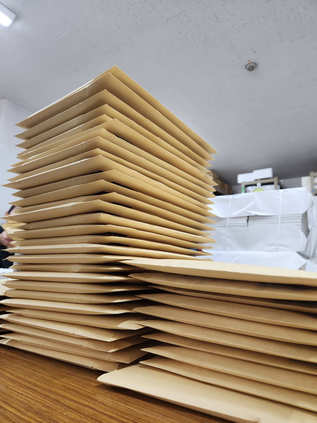 出来上がった封筒が積み上がっていく様子は圧巻です。