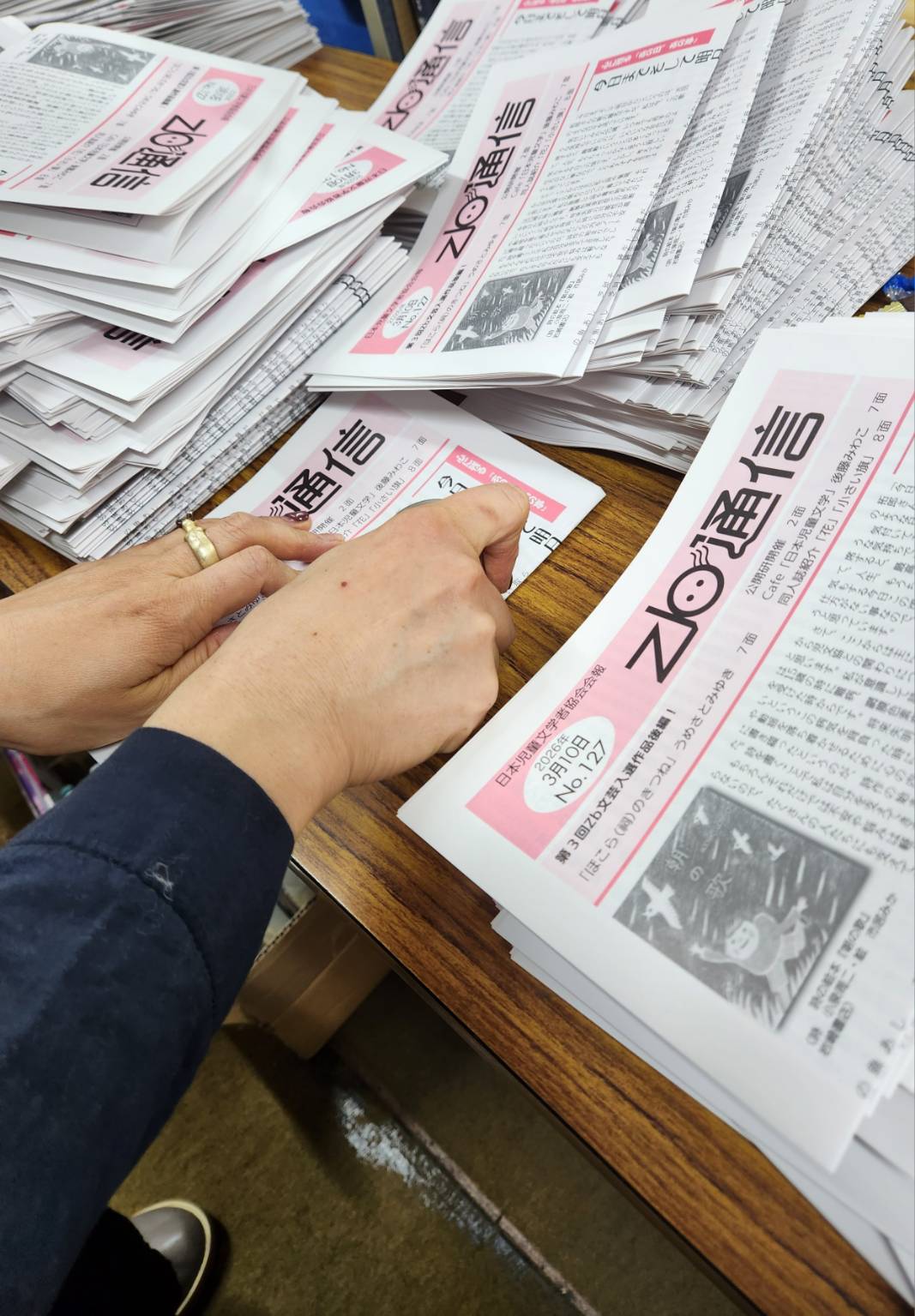さて先日、Zb通信(127号)と、「日本児童文学」(2026年3・4月号)の発送作業を行いました。