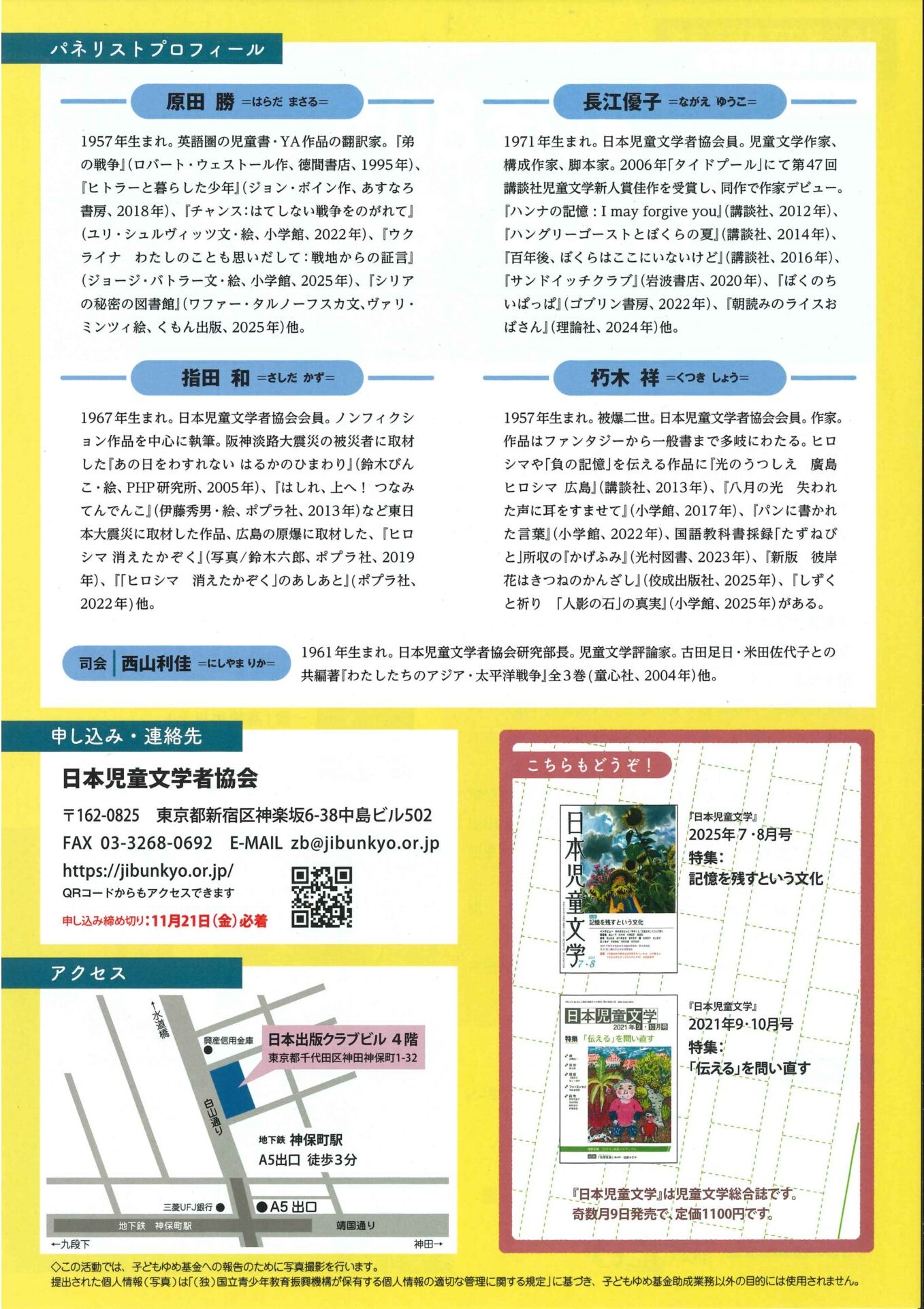 2025公開研究会 戦後80年、”伝える”を考える ~<記憶>の継承と児童文学の力~ 11/29開催